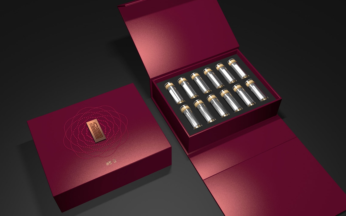 在此次海參禮盒的包裝設(shè)計中,我們以中國傳統(tǒng)文化為創(chuàng)意出發(fā)點,注入了壽、福、燕、祿等寓意美好生活的祝福言語,滿足創(chuàng)新消費人群對于個性化需求的追求。同時,我們結(jié)合高端禮品所需具備的氣質(zhì)和儀式感,設(shè)計出了一款高品質(zhì)的海參禮盒包裝。